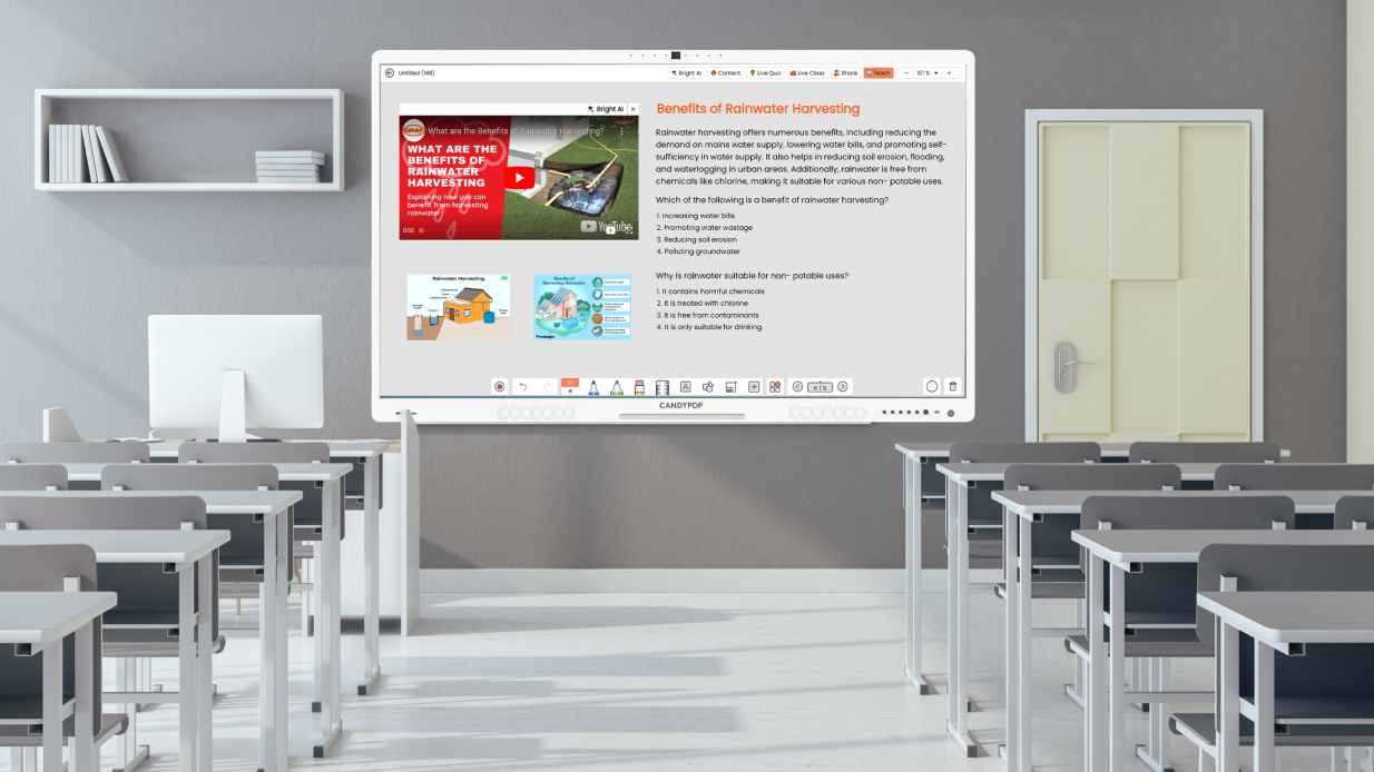 Candypop IFP has a toughened glass and coated with Anti-glare and flicker free. AI evaluates the grade level and students' grasp of the material, rapidly generating a variety of quizzes in an instant. With advanced image search, accessing engaging and pertinent visuals is a breeze.